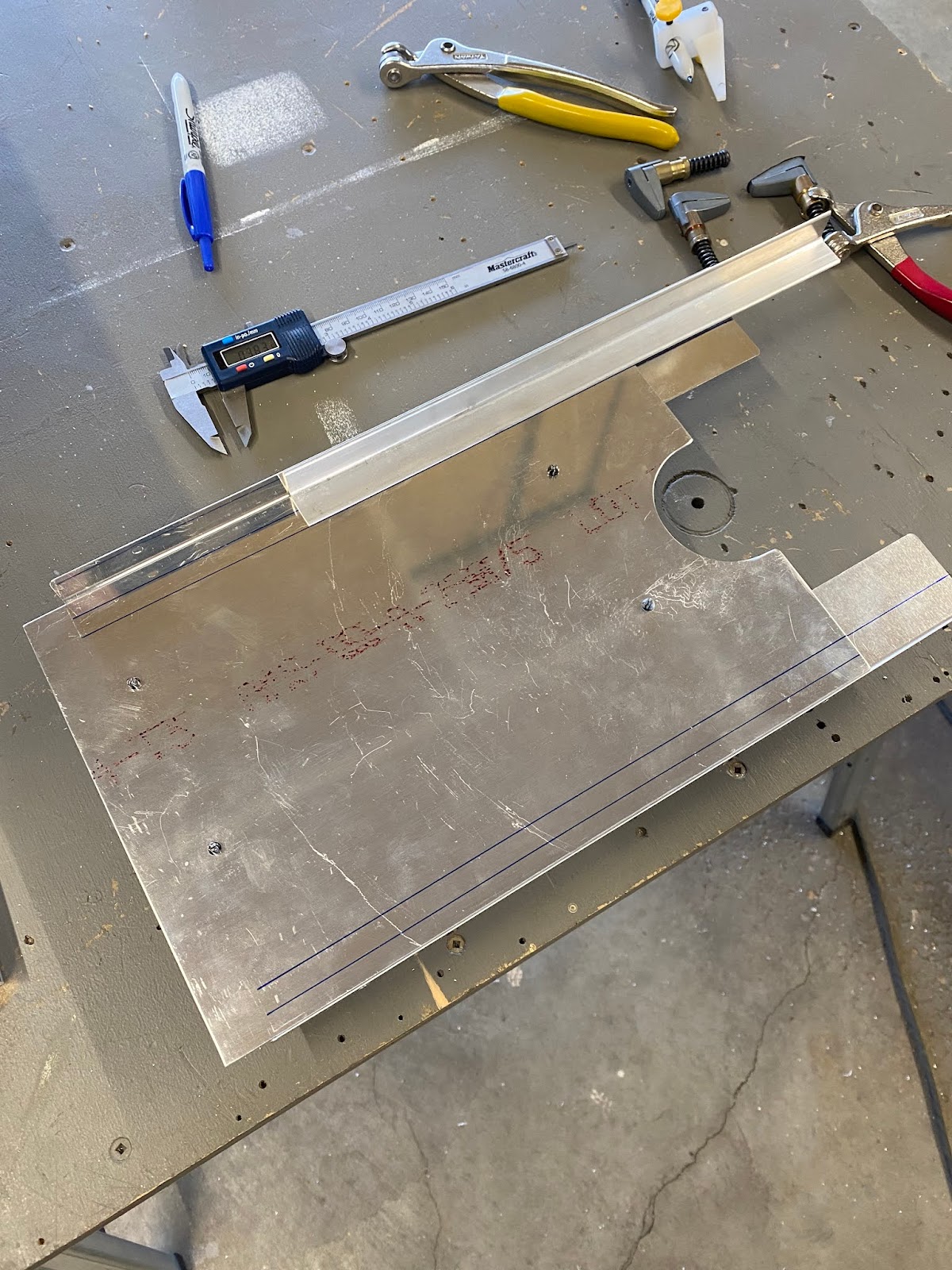 So I will need to reinforce the mounting to allow a more sturdy installation. Since the fuel lines are all hard lines, any excessive movement is sure to invite leaks. I began to think about how I was going to do this, lots of builders have tried various methods. I settled on keeping it easy. My plan is to support the platform with 0.063" baseplate and use 3/4"x3/4x0.063"angle. Here is a mock up to help me sort out the fit and dimensions.