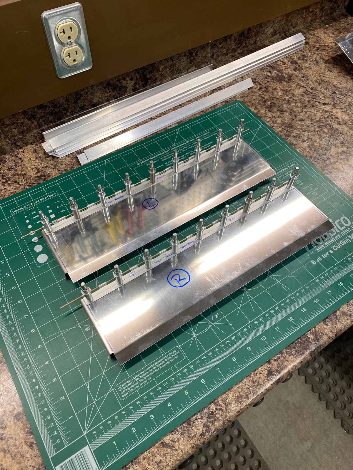 I then drew centerlines and required dimensions on all of the hinges. Im careful to label all pieces so that once they are drilled, they end up getting riveted onto the correct place/orientation.