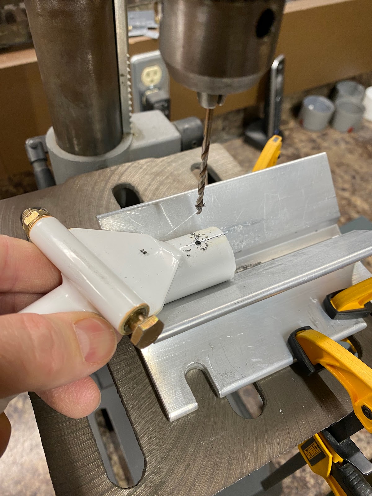 Now that I have perfect alignment. I clamped the assembly in the drill press and then upsized to #30, #19, and eventually a 3/16” reamer.